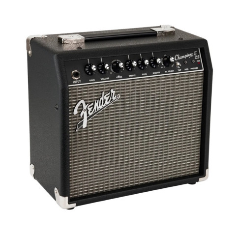 Fender Champion II 25 แอมป์กีตาร์ไฟฟ้า ราคา 6,000.00 บาท คือแอมป์ดิจิทัลขนาดกะทัดรัดที่ให้โทนเสียงคงทน ชัดเจน และ “หลากหลายสุดๆ” เหมาะตั้งแต่ซ้อมที่บ้าน แจมกับเพื่อน ไปจนถึงงานเล่นสดขนาดย่อม ด้วยกำลังขับ 25W และลำโพง Fender Special Design 8 นิ้ว ที่บาลานซ์เสียงได้ดี เล่นคลีนก็ใส เล่นแตกก็หนา พร้อมเอฟเฟกต์ในตัวให้ปรับโทนได้ในไม่กี่นาที