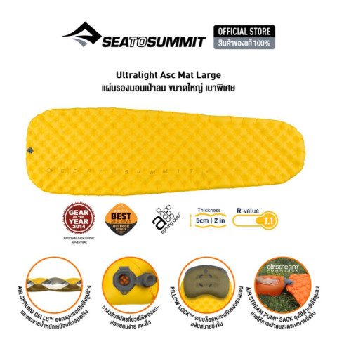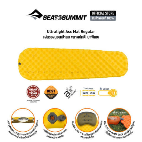 Sea to Summit ULTRALIGHT ASC MAT YELLOW (REGULAR) แผ่นรองนอนเป่าลมพกพาระดับอัลตร้าไลท์ สำหรับสายเดินป่า/แบ็คแพ็คที่ต้องการ “น้ำหนักเบา + นอนสบาย” โดยไม่ต้องแบกของหนักเกินจำเป็น ได้รับรางวัล Gear of the Year จาก National Geographic Adventure และ Best New Gear จาก Gear Institute (ปี 2014) การันตีทั้งนวัตกรรมและความใช้งานจริงในทริปผจญภัย