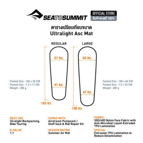 ถ้าคุณกำลังมองหาแผ่นรองนอนที่ พับเล็ก เบามาก ใช้งานง่าย และยังนอนสบาย Sea to Summit ULTRALIGHT ASC MAT คือไอเท็มที่พร้อมยกระดับการพักผ่อนในแคมป์ให้เต็มอิ่มในทุกคืนของการเดินทาง