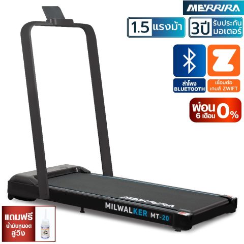 [ผ่อน 0%] Merrira ลู่วิ่งไฟฟ้า MT-20 / MT-30 ลู่วิ่งขนาดกะทัดรัดสำหรับออกกำลังกายที่บ้าน วิ่งเพลิน เชื่อมต่อ Zwift ได้ ควบคุมง่ายด้วย รีโมท พร้อมหน้าจอ LCD แสดงผลครบ เหมาะสำหรับสายเดิน-วิ่งเบาๆ ที่ต้องการความสะดวกและประหยัดพื้นที่ ในราคา 6,042.40 บาท