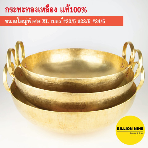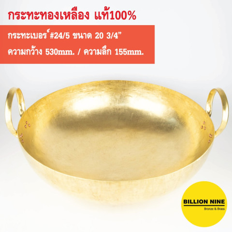 กระทะทองเหลือง แท้100% เบอร์#24 หนา5หลี กว้าง 53.0cm (20¾") ใช้ทำอาหาร ขนมไทย ทอด หมูตุ๋น ต้ม กวนไส้