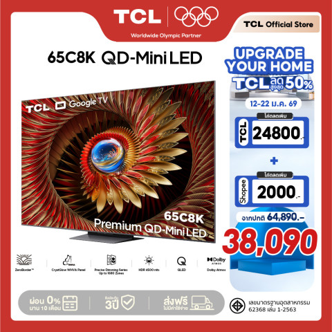 หากคุณกำลังมองหาทีวี 65 นิ้วที่ “ภาพดำลึก สีสด รายละเอียดชัด และดีไซน์พรีเมียม” TCL 65C8K คือคำตอบที่ลงตัวสำหรับยกระดับความบันเทิงในบ้านให้เหนือกว่าทีวี LED ทั่วไป