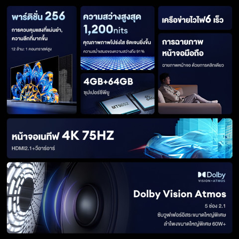 ภาพสวยคมชัด 4K ความละเอียดระดับ 4K อัตราส่วน 16:9 ให้รายละเอียดครบ สีสันชัด ดูสนุกทั้งหนังและรายการโปรด