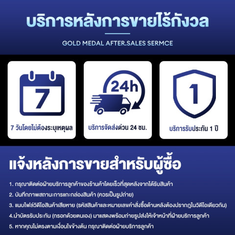 โปรดตรวจสอบสินค้าและอุปกรณ์ในกล่องทันทีหลังได้รับสินค้า และแจ้งร้านค้าภายใน 24 ชั่วโมง หากพบปัญหา