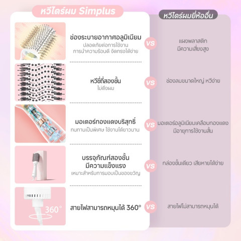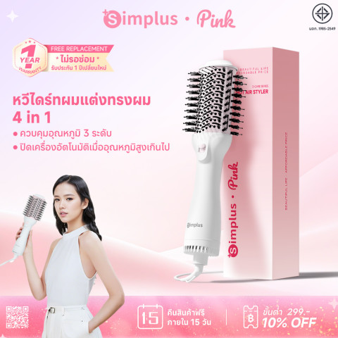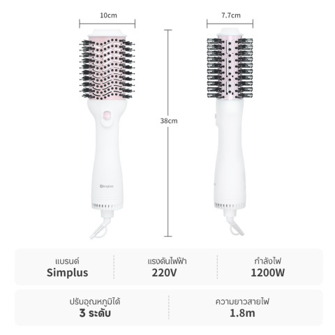 Simplus หวีไดร์ ใช้ได้ทั้งผมตรง-ผมหยิก แห้งเร็ว ดูแลเส้นผมไม่เสีย ปรับความร้อน 3 ระดับ รุ่น RFSH002 (สีขาว) ราคา 549.50