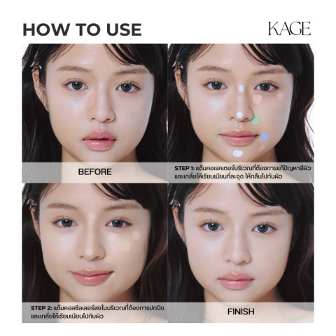 ตามด้วยคอลซีลเลอร์หรือแต่งหน้าตามปกติ เพื่อให้ผิวดูเนียนกลืน
