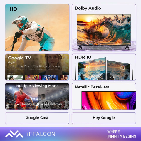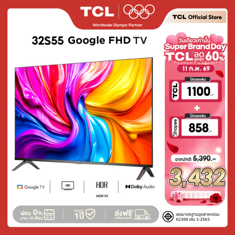 iFFALCON ทีวี 32 นิ้ว Google TV รุ่น 32S55 (HD 720P) ดีไซน์ขอบจอบางเฉียบแบบเมทัลลิกจากแบรนด์ iFFALCON ภายใต้การผลิตจาก TCL ให้คุณเพลิดเพลินกับความบันเทิงครบจบในเครื่องเดียว ทั้ง Google TV, Netflix และ YouTube พร้อมเสียงสมจริงด้วย Dolby Audio ในราคาคุ้มค่า 5,483.90 บาท