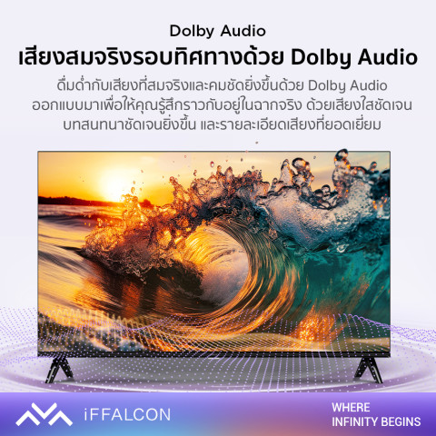 รองรับการถอดรหัสคอนเทนต์ HDR10 วิเคราะห์ภาพอย่างชาญฉลาดในหลากหลายฉาก และปรับสัญญาณแบบไดนามิก เพื่อเพิ่มความคมชัดและคอนทราสต์ให้เห็นรายละเอียดชัดขึ้นDolby Audio เสียงใส ชัดทุกบทสนทนา