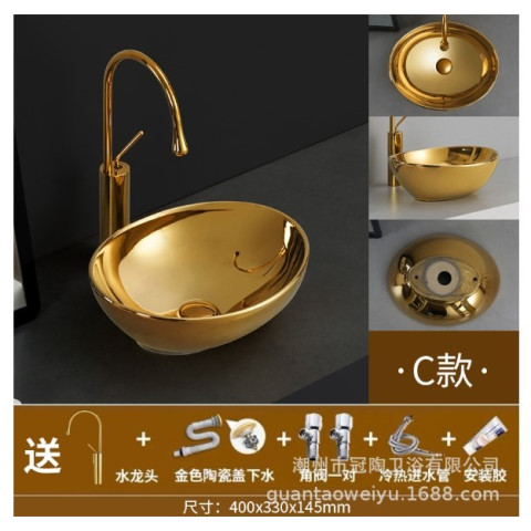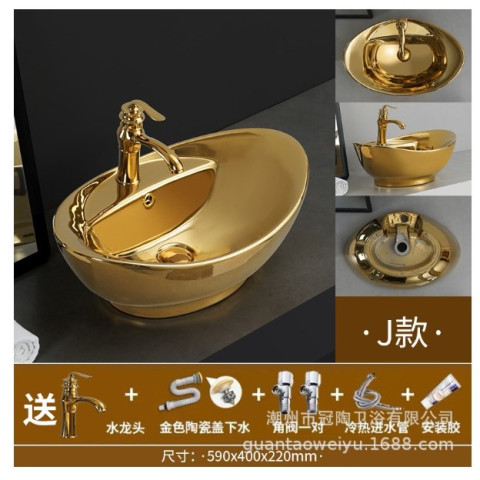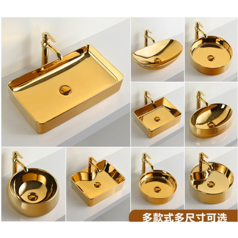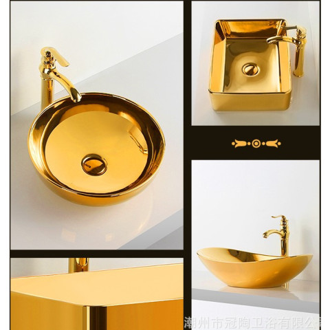 อ่างล้างหน้า/อ่างล้างมือเคลือบทองคำ รุ่นอ่างทองแบบกลมสั้น (ทรงเงินหยวนเปา) เติมความหรูหราแบบยุโรป พร้อมความหมายมงคล “เสริมความรวย ร่ำรวยผิดปกติ” เหมาะทั้งห้องน้ำบ้านพัก โรงแรม คอนโด อพาร์ตเมนต์ คลับเฮาส์ หรือพื้นที่รับแขกที่ต้องการความโดดเด่นเป็นพิเศษ