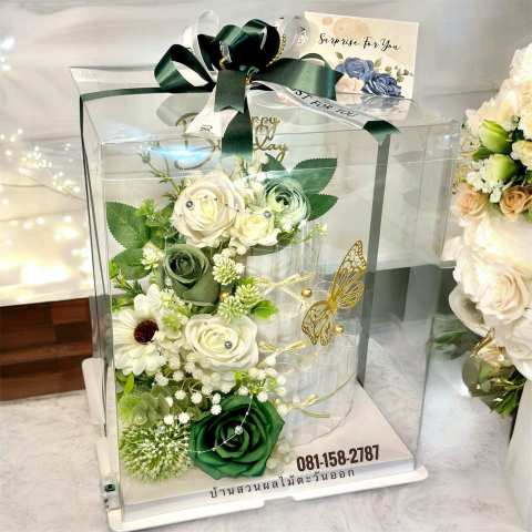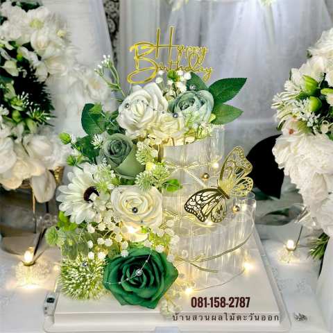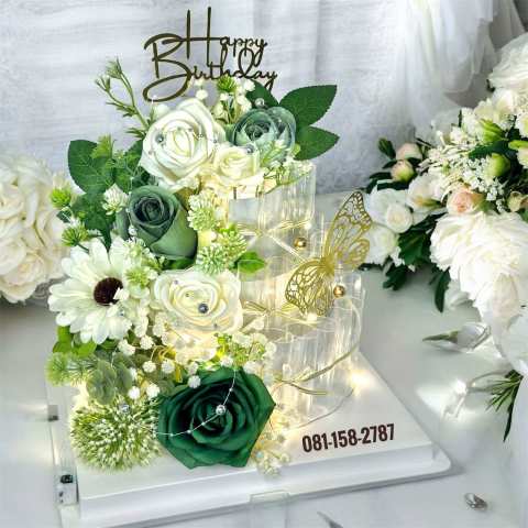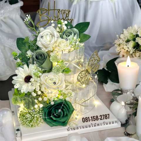 MoneyCake เค้กใส่เงิน 3ชั้นL เค้กเงินไฮโซแบบ 3 มิติ ดีไซน์หรูโทน ขาว-เขียว เหมาะสำหรับมอบเป็นของขวัญที่ “ว้าวตั้งแต่แรกเห็น” เปลี่ยนการให้เงินสดให้กลายเป็นของขวัญที่ดูพรีเมียม มีลูกเล่น และถ่ายรูปสวยทุกมุม ไม่ว่าจะเป็นงานแต่ง งานวันเกิด วาเลนไทน์ งานเกษียณ แสดงความยินดี หรือรับปริญญา