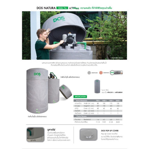 รุ่นสินค้า: DOS NATURA Water Pac (ถังเก็บน้ำ + ปั๊มน้ำในชุดเดียว)