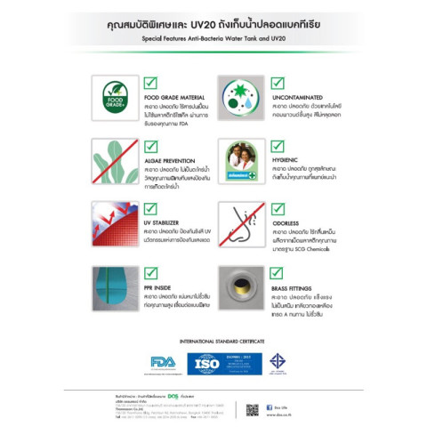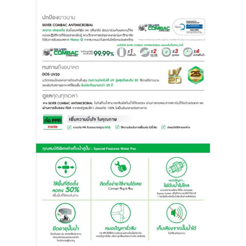ยับยั้งแบคทีเรียและจุลินทรีย์ 99.99% ด้วยเทคโนโลยี DOS Silver Combac Anti-Microbial (ได้รับการรับรองจากสมาคมนาโนเทคโนโลยีแห่งประเทศไทย)