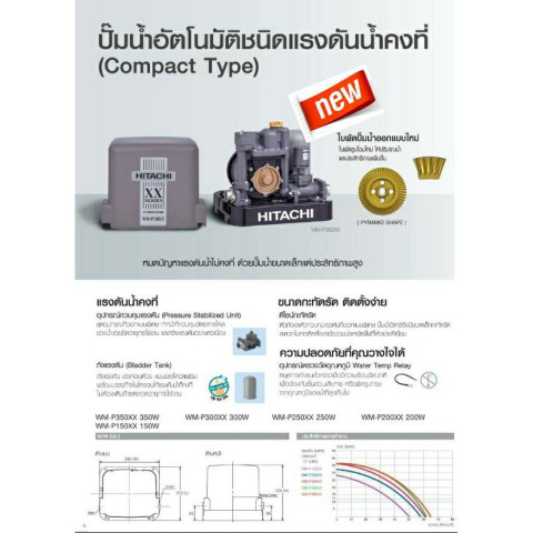 ออกแบบให้ใช้งานร่วมกับปั๊มน้ำมาตรฐานได้ เช่น GRUNDFOS (HY-16), HITACHI (HY-17), MITSUBISHI (HY-17) (ชุดนี้มาพร้อม ปั๊มน้ำ HITACHI รุ่น WMP)