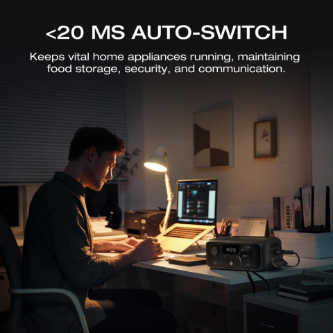 เมื่อไฟดับ ระบบจะสลับไปใช้ไฟจาก RIVER 3 อย่างรวดเร็วในระดับ <20 ms ช่วยให้เครื่องใช้จำเป็นยังทำงานต่อได้ ลดความเสี่ยงข้อมูลหาย/งานสะดุดพกพาสะดวก แข็งแรง ใช้งานได้อุ่นใจ
