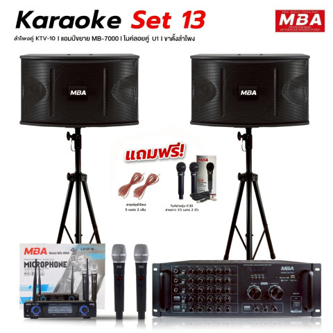 MBAAUDIOTHAILAND ชุดเครื่องเสียงร้องคาราโอเกะเสียงดี เบสหนัก พร้อมใช้งาน ครบชุดทั้งลำโพง 10 นิ้ว ไมค์ลอยคู่ แอมป์ขยายเสียงบลูทูธ และขาตั้งลำโพงมาตรฐาน เหมาะสำหรับงานเลี้ยงในบ้าน งานกลางแจ้ง ร้านอาหาร ห้องสัมมนา หรือห้องคาราโอเกะ ให้เสียงร้องชัด ดนตรีแน่น เบสลงลึก พร้อมปรับแต่งเอฟเฟกต์เสียงร้องได้ตามสไตล์