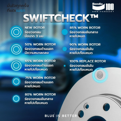 มีนวัตกรรม Swift Check ช่วยบอกระดับการสึกหรอ “มองเห็นได้” ประเมินอายุจานที่เหลือได้ง่าย โดยไม่ต้องวัดความหนา