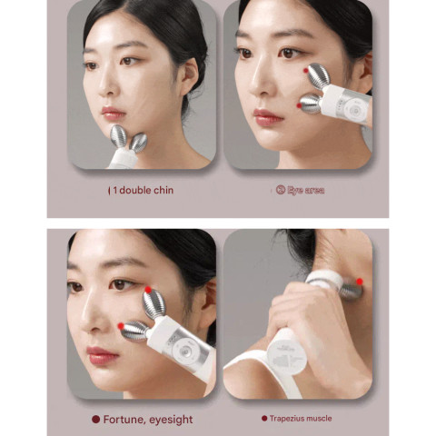 นวด/ลากหัวเครื่อง จากล่างขึ้นบน (แนะนำให้ใช้ร่วมกับสกินแคร์ เช่น เซรั่ม/เจล เพื่อให้ลื่นและสบายผิว)