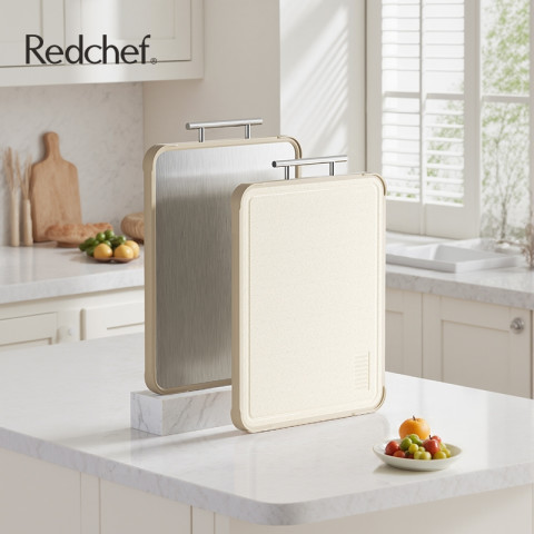 Redchef เขียง 2 ด้าน สแตนเลส 304 ขนาด 41 x 31 x 1.5 ซม. ดีไซน์หนา แข็งแรง ใช้งานได้ทั้ง หั่น / สับ / เตรียมวัตถุดิบ เหมาะสำหรับครัวเรือนและผู้ที่ทำอาหารเป็นประจำ ช่วยลดการสะสมของแบคทีเรียและกลิ่นติดเขียง ทำความสะอาดง่าย ใช้งานคุ้มค่าในทุกมื้ออาหาร