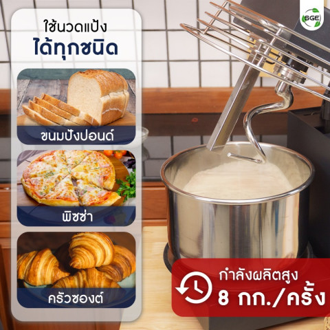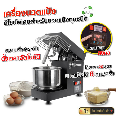SGE เครื่องนวดแป้ง Spiral Mixer รุ่น SPIDO เครื่องนวดแป้งสำหรับงานเบเกอรี่มืออาชีพ ออกแบบเฉพาะเพื่อ “นวดแป้งทุกชนิด” ด้วยระบบ หัวตีเกลียว + โถหมุน ช่วยพัฒนาโครงสร้างกลูเตนอย่างนุ่มนวล ไม่ทำให้แป้งฉีกขาด ได้โดว์เนียน เหนียว ขึ้นฟิล์มสวย เหมาะทั้งแป้งขนมปัง พิซซ่า โดนัท และโดว์ความชื้นสูง พร้อม รับประกันศูนย์ไทย