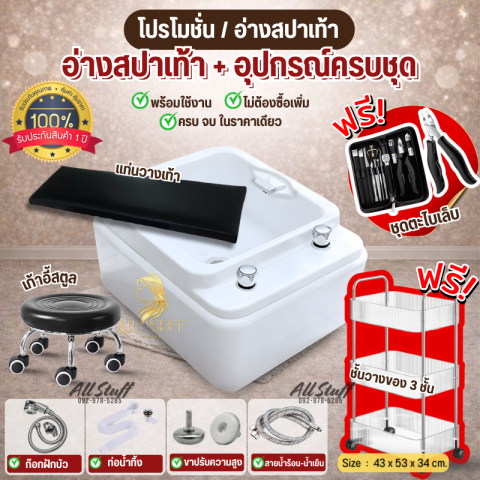 อุปกรณ์ในชุด: อ่างสปาเท้า + แท่นวางเท้า (ของแถม)