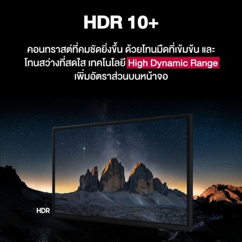 ความละเอียด HD 1,366 x 768 พร้อม HDR10+ ช่วยเพิ่มรายละเอียดในฉากมืดและสว่าง ให้ภาพดูมีมิติมากขึ้น และเทคโนโลยี PurColor ช่วยถ่ายทอดสีสันเป็นธรรมชาติเสียงดีเกินตัว ดูสนุกทุกคอนเทนต์