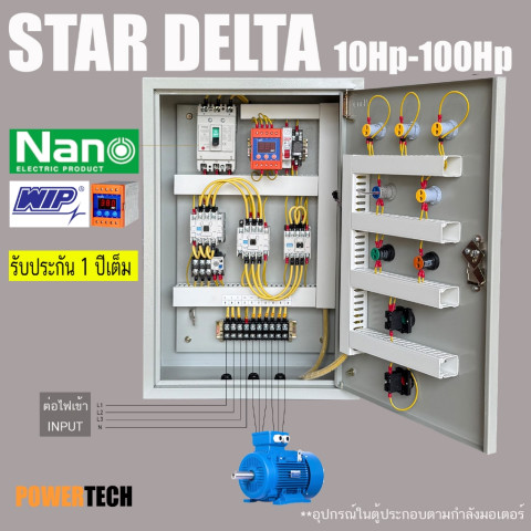 Star Delta 3 เฟส 10HP–100HP ตู้ควบคุมมอเตอร์สตาร์-เดลต้า ทางเลือกที่คุ้มค่าสำหรับงานอุตสาหกรรมและงานระบบที่ต้องการสตาร์ทมอเตอร์อย่างนุ่มนวล ลดกระแสกระชากขณะเริ่มเดินเครื่อง ช่วยยืดอายุการใช้งานของมอเตอร์และอุปกรณ์ไฟฟ้า ภายในเป็นชุดควบคุมมาตรฐาน SN ติดตั้งใน ตู้เหล็ก แข็งแรง พร้อมระบบป้องกัน ไฟตก/ไฟเกิน เพื่อความปลอดภัยและความเสถียรในการใช้งาน