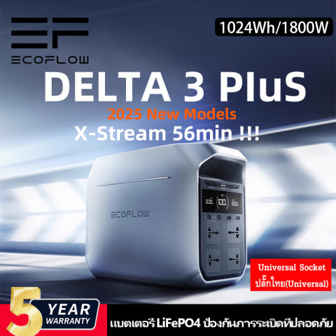 【New Models 2025!】EcoFlow DELTA 3 Plus Portable Power Station 1024Wh/1800W รับประกัน 5 ปี ในราคา 13,600.00 บาท คือสถานีไฟฟ้าพกพาที่ตอบโจทย์ทั้งบ้าน รถ แคมป์ปิ้ง และงานภาคสนาม ให้พลังงานเสถียรด้วยแบตเตอรี่ LFP (LiFePO4) ที่ทนทาน ชาร์จได้หลายทาง และมีพอร์ตใช้งานครบสำหรับอุปกรณ์หลายชิ้นพร้อมกัน พร้อมฟังก์ชัน UPS <10ms ช่วยสำรองไฟให้เครื่องสำคัญได้อย่างมั่นใจ