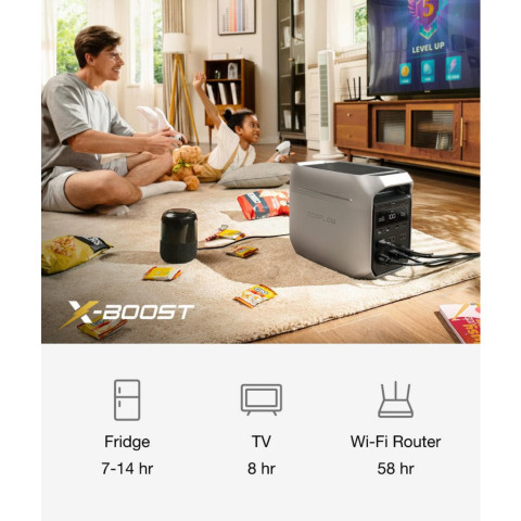 กำลังขาออก AC รวม 1800W รองรับไฟกระชากได้ถึง 3600W และเพิ่มกำลังได้สูงสุด 2200W ด้วย X-Boost เหมาะกับเครื่องใช้ไฟฟ้าหลากประเภททั้งที่บ้านและนอกสถานที่ขยายความจุได้ถึง 5kWh