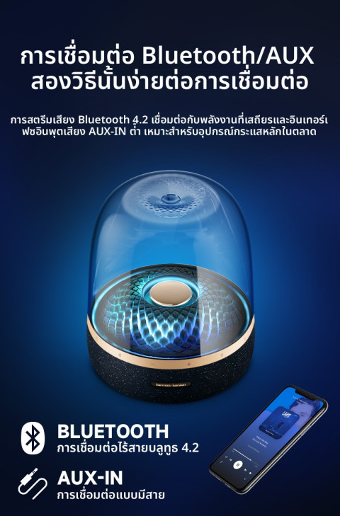 Harman/Kardon Aura Studio 4 Home Speaker Black ลำโพงตั้งโต๊ะดีไซน์พรีเมียมที่เป็นทั้งเครื่องเสียงและของแต่งบ้านในชิ้นเดียว โดดเด่นด้วยเสียงกระจายรอบทิศทาง 360 องศา ให้รายละเอียดชัดเจนและเบสที่นุ่มลึก เติมบรรยากาศให้ทุกมุมห้อง พร้อมไฟเอฟเฟกต์ Diamond สวยสะดุดตา เหมาะทั้งฟังเพลงชิล ๆ ทำงาน หรือปาร์ตี้เล็ก ๆ ที่บ้าน
