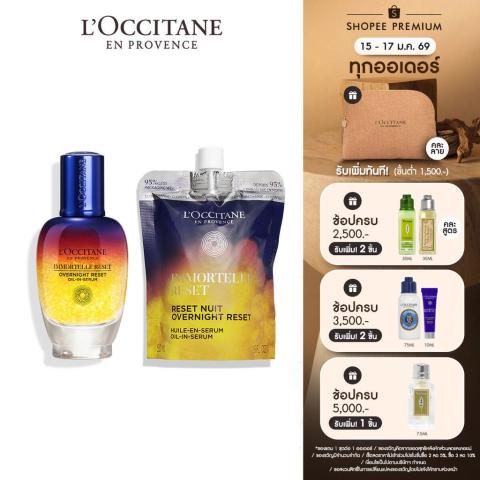 L'Occitane Immortelle Reset Lover Set (Reset 50 ml + Reset Refill 50 ml) คือเซ็ตสุดคุ้มสำหรับคนรักผิวโกลว์ดูพักผ่อนเต็มอิ่ม รวมเซรั่มกู้ผิวโทรมในตำนานจากล็อกซิทาน Immortelle Reset Oil-In-Serum 50ml (สูตรใหม่) พร้อม Immortelle Reset Oil-in-Serum Eco-Refill 50ml (สูตรเดิม) ให้คุณดูแลผิวได้ต่อเนื่องยาวนานขึ้นในราคาที่คุ้มค่า