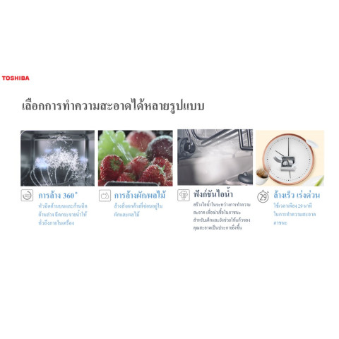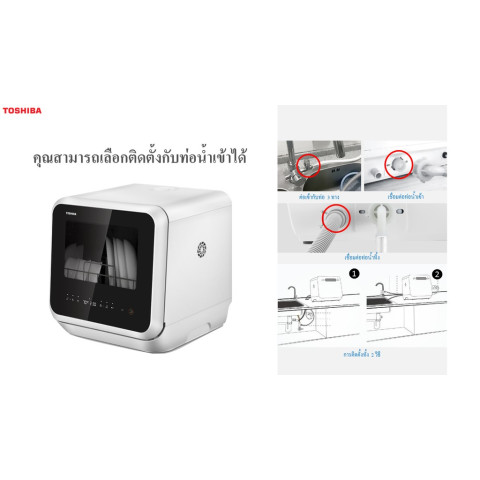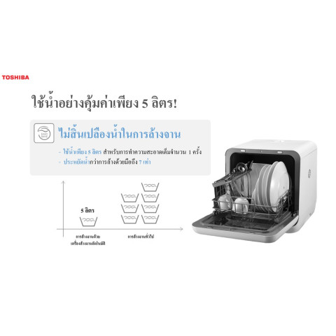 TOSHIBA เครื่องล้างจานอัตโนมัติ รุ่น DWS-22ATH(K) แบบตั้งโต๊ะ (มินิ) รองรับสูงสุด 22 ชิ้น มอบความสะอาดที่ “สะอาดกว่า ประหยัดกว่า” เหมาะสำหรับคอนโด หอพัก หรือครัวที่มีพื้นที่จำกัด เพราะใช้งานสะดวก ไม่ต้องติดตั้ง เติมน้ำได้ด้วยถังน้ำในตัว พร้อมประตูโปร่งใสและไฟส่องสว่างภายใน ช่วยให้มองเห็นการทำงานได้ชัดเจนระหว่างล้าง