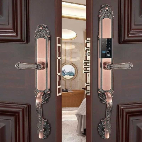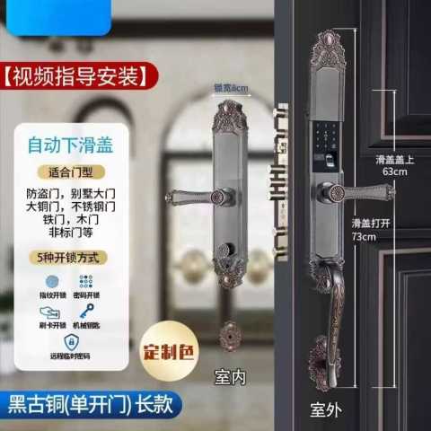 ยกระดับความปลอดภัยบ้านของคุณด้วย Villa ประตูล็อคลายนิ้วมือกันน้ํา Antifreeze ประตูล็อคอัจฉริยะดีไซน์โมเดิร์น ที่ผสานเทคโนโลยีลายนิ้วมือเข้ากับระบบป้องกันการงัดแงะ เหมาะสำหรับบ้านเดี่ยว วิลล่า และประตูทางเข้าที่ต้องการความปลอดภัยสูง พร้อมดีไซน์สีดำบรอนซ์สุดหรู เข้ากับบ้านสไตล์ทันสมัยได้อย่างลงตัว