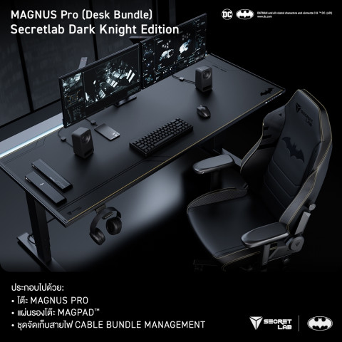 ยกระดับสตูดิโอเกมมิ่งและมุมทำงานของคุณให้ล้ำสมัยด้วย Secretlab MAGNUS Pro Bundle Dark Knight Edition โต๊ะคอมปรับระดับไฟฟ้าแบบครบเซ็ต ดีไซน์ดาร์กโทนเท่ในสไตล์อัศวินรัตติกาล มาพร้อมแผ่นรองโต๊ะแม่เหล็กและชุดจัดการสายเคเบิลเฉพาะทาง เพื่อความเรียบร้อย สวยงาม และทรงพลังในทุกมุมมอง ทั้งหมดนี้ในราคาชุดเซ็ตเพียง 39,128 บาท สำหรับขนาดโต๊ะ 1.77 เมตร