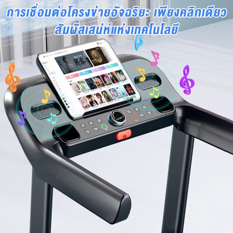 หน้าจอแสดงผลแบบ HD LED แสดงข้อมูลครบถ้วนทั้งความเร็ว เวลา ระยะทาง แคลอรี่ และอัตราการเต้นหัวใจ สามารถเชื่อมต่อบลูทูธกับสมาร์ทโฟนเพื่อเปิดเพลงหรือคอนเทนต์ระหว่างการวิ่งได้ พร้อมที่วางโทรศัพท์มือถือ/iPad ให้คุณดูซีรีส์ ฟังเพลง หรือดูคลิปออกกำลังกายไปพร้อมกัน เพิ่มความเพลิดเพลินในการเทรนนิ่งทุกวัน