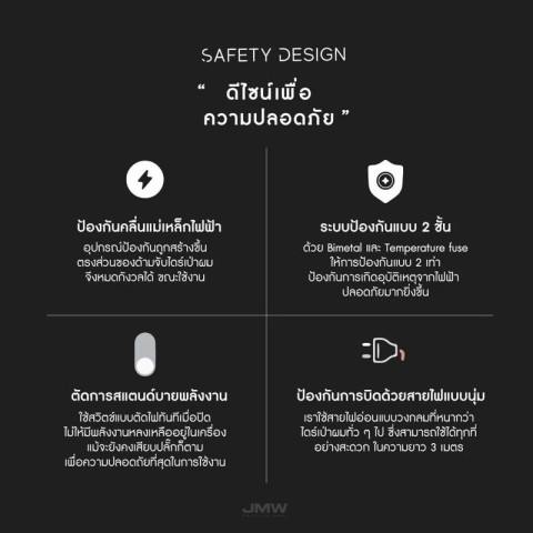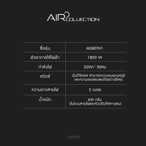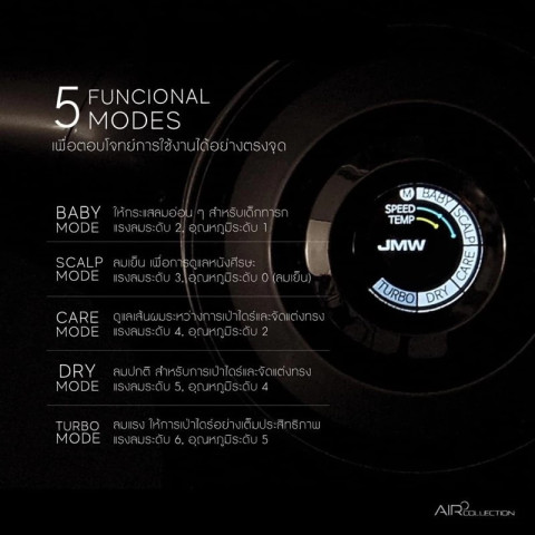 สัมผัสประสบการณ์การเป่าผมแบบมืออาชีพด้วย JMW Aircollection / JMW Phantom ไดร์เป่าผมคุณภาพสูงจากเกาหลี ที่ออกแบบมาเพื่อตอบโจทย์ทั้งช่างทำผมระดับโปรและการใช้งานในบ้านอย่างเหนือระดับ ให้ผมแห้งไว สุขภาพดี และจัดทรงสวยได้ดั่งใจ ในราคาเพียง 6,270 บาท