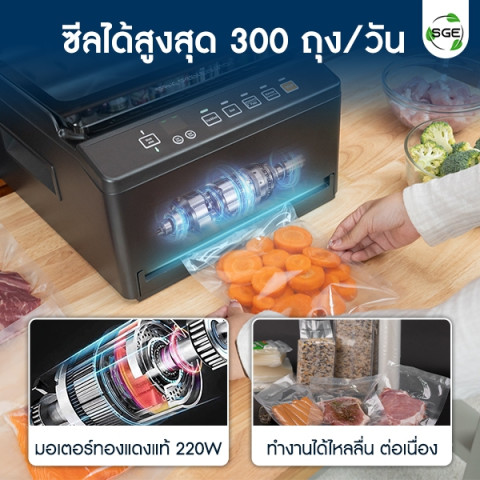 ตัวเครื่องออกแบบมาสำหรับการใช้งานกึ่งอุตสาหกรรม ใช้งานต่อเนื่องได้สบายด้วยมอเตอร์ทองแดงแท้กำลังไฟ 220W และปั๊มสุญญากาศคู่ แรงดูดสูงถึง -0.98 bar ดูดอากาศออกได้รวดเร็ว ภายใน 4–12 วินาทีต่อรอบ รองรับการซีลได้สูงสุดถึง 300 ถุงต่อวัน เหมาะสำหรับร้านอาหาร คาเฟ่ ร้านขายวัตถุดิบสด ร้านออนไลน์ หรือผู้ที่ต้องการเตรียมอาหาร Meal Prep เก็บฟรีซแบบมืออาชีพ