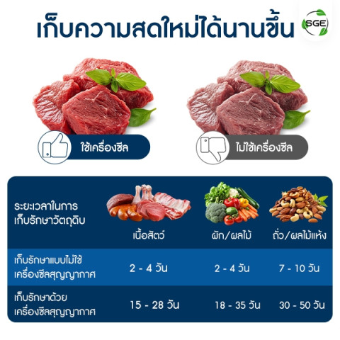 ใช้งานได้กับถุงซีลสุญญากาศมาตรฐานทั่วไป และต่อเข้ากับอุปกรณ์เสริม เช่น กระปุกสุญญากาศ ขวดไวน์ หรือถุงซิปล็อค ช่วยเพิ่มโอกาสการใช้งานให้ครอบคลุมมากขึ้นคุ้มค่า พร้อมการรับประกันจากศูนย์ไทย