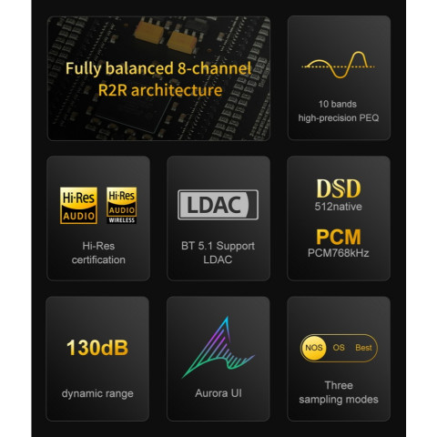 Centaurus ใช้เครือข่ายตัวต้านทาน R2R แบบ 8 แชนเนล แยกวงจรเฉพาะสำหรับ DSD และ PCM เพื่อให้ได้การถอดรหัสที่บริสุทธิ์และแม่นยำ รองรับค่าการวัดเสียงระดับไฮเอนด์ THD+N ต่ำถึง 0.0005%, SNR และ DNR สูงถึง 130dB @1kHz ถ่ายทอดทุกโน้ต ทุกชั้นของดนตรีได้อย่างครบถ้วน เหมาะสำหรับสายออดิโอไฟล์ที่ต้องการความเที่ยงตรงสูงสุด