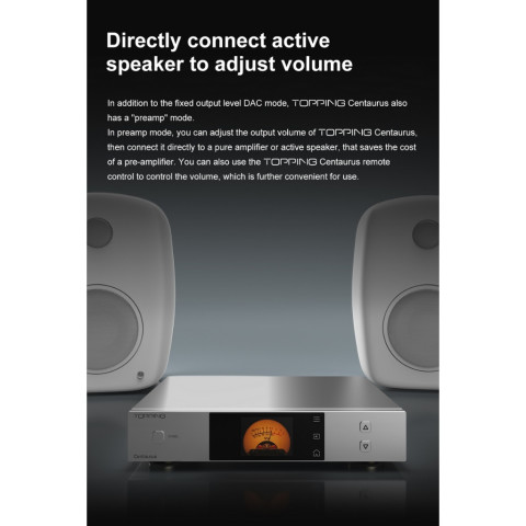 ด้านการเชื่อมต่อ Centaurus รองรับอินพุตครบครันทั้ง USB, Optical, Coaxial, AES, IIS และ Bluetooth 5.1 พร้อมเอาต์พุตทั้ง RCA และ XLR แบบบาลานซ์ สามารถต่อเข้ากับแอมป์พลังงานหรือลำโพงแอคทีฟได้โดยตรง ทำงานในโหมดพรีแอมป์ ปรับระดับเสียงได้จากตัวเครื่องหรือรีโมตคอนโทรล ใช้งานสะดวกทั้งในระบบโฮมออดิโอและเดสก์ท็อป