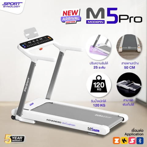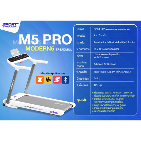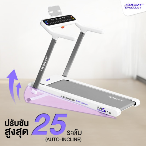ยกระดับการวิ่งในบ้านของคุณด้วย SPORT SYNOLOGY ลู่วิ่งไฟฟ้า M5Pro NewArrival2026 มอเตอร์ Brushless 4HP ปรับชันได้ถึง 25 ระดับ ลู่วิ่งรุ่นใหม่ที่ออกแบบมาเพื่อคนจริงจังเรื่องสุขภาพและฟิตเนส ทั้งวิ่งออกกำลังกายเบาๆ ไปจนถึงซ้อมวิ่งจริงจัง รองรับทั้งการวิ่งในบ้านและการเทรนแบบ Virtual ผ่านแอปฟิตเนสยอดนิยม
