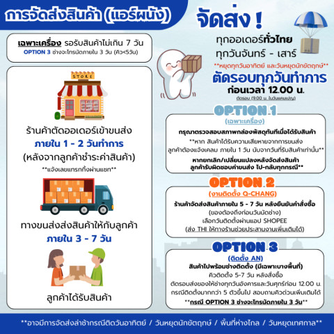 กรณีเลือก Option 3 (ติดตั้ง AN) – ช่างของทางร้านจะนำแอร์ไปพร้อมติดตั้งภายในประมาณ 5–7 วัน