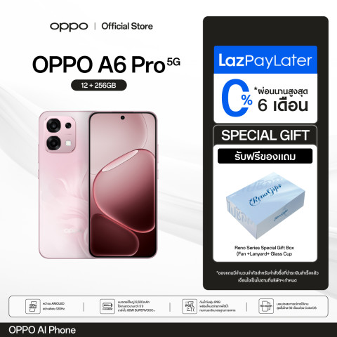 สัมผัสประสบการณ์สมาร์ทโฟน 5G ที่ทั้งทรงพลังและทนทานกับ OPPO A6 Pro 5G (12+256GB) มาพร้อมดีไซน์หรูบางเบา กันน้ำกันฝุ่นระดับ IP69 แบตเตอรี่สุดอึด 6500mAh ชาร์จไว 80W พร้อมกล้องความละเอียดสูง 50MP ให้คุณใช้งานได้ครบทุกไลฟ์สไตล์ในเครื่องเดียว ในราคาสุดคุ้มเพียง 10,999 บาท