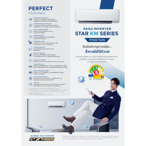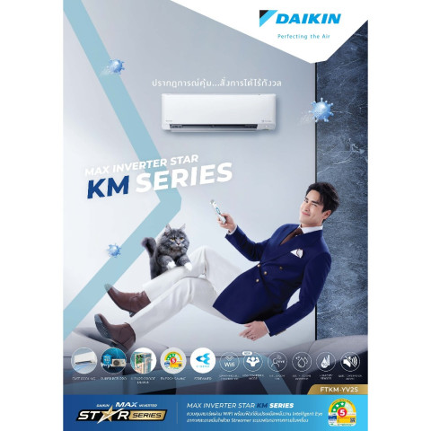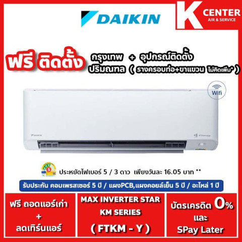 ให้บ้านเย็นสบาย ประหยัดไฟยาวๆ พร้อมติดตั้งครบจบในครั้งเดียวด้วยแอร์บ้าน DAIKIN รุ่น FTKM-Y (Max Inverter KM Series) ระบบอินเวอร์เตอร์เต็มประสิทธิภาพ เหมาะสำหรับคนที่ต้องการทั้งความเย็น สบายตัว อากาศสะอาด และค่ไฟสุดคุ้ม มาพร้อมบริการติดตั้งฟรีในกรุงเทพและปริมณฑล และของแถมอุปกรณ์ติดตั้งมาตรฐานครบชุด