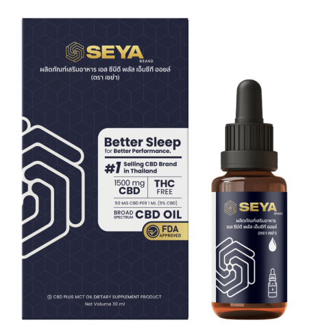 สัมผัสประสบการณ์การพักผ่อนยามค่ำคืนที่ลึกและผ่อนคลายยิ่งขึ้นด้วย SEYA Broad Spectrum C.B.D Oil Better Sleep 1500mg – น้ำมันสูตรเพื่อการนอนหลับลึกและผ่อนคลาย ผลิตภัณฑ์เสริมอาหารจากพืชที่ผสานพลังของ S CBD เข้มข้นกับน้ำมัน MCT คุณภาพสูง เหมาะสำหรับผู้ที่ต้องการฟื้นฟูการนอนหลับให้มีประสิทธิภาพมากขึ้นอย่างเป็นธรรมชาติ