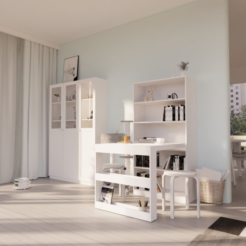 ยกระดับมุมทำงานและมุมโชว์ของสะสมให้ดูเรียบหรูสไตล์มินิมอลด้วยชุดเฟอร์นิเจอร์ Looms ตู้โชว์กระจก-ไม้ 80+40 รุ่น GLAZIA สีขาว & โต๊ะ รุ่น ALINA สีขาว เซ็ตเดียวครบทั้งตู้โชว์บานกระจก 2 ขนาด และโต๊ะอเนกประสงค์ที่เป็นได้ทั้งโต๊ะทำงานและชั้นวางของ เหมาะสำหรับคอนโด บ้าน หรือโฮมออฟฟิศที่มีพื้นที่จำกัด แต่ต้องการฟังก์ชันจัดเก็บครบและดีไซน์ลงตัว