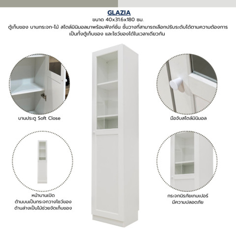 ตู้โชว์บานกระจก-ไม้ รุ่น GLAZIA ขนาด 40x31.6x180 ซม. จำนวน 1 ใบ (1 หน้าบานเปิด)