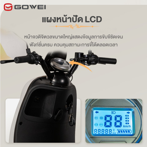 จอ LCD ครบข้อมูล แสดงระดับแบต ระยะทาง ไฟเลี้ยว และรายละเอียดการขับขี่ ดูง่ายชัดเจน