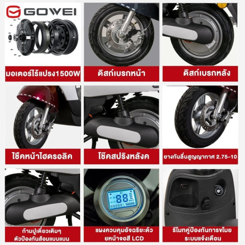 GOWEI มอเตอร์ไซค์ไฟฟ้า 1500W แผงหน้าปัด LCD (สีชมพู) | ราคา 15,400.00 บาท