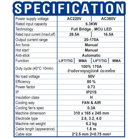ลวดเชื่อมที่รองรับ: 2.6 / 3.2 / 4.0 มม.