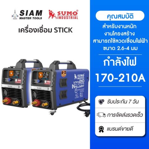 เครื่องเชื่อม STICK 170 & STICK 210 SUMO PRO MCU INTELLIGENT ออกแบบมาเพื่อให้เชื่อมได้ “นิ่ง-นิ่ม-แผลสวย” ด้วยระบบ Full Bridge ควบคุมด้วย MCU แสดงผลด้วยไฟ LED และรองรับการทำงานหนักแบบต่อเนื่อง เหมาะทั้งงานช่างมืออาชีพและผู้เริ่มต้นที่ต้องการเครื่องเชื่อมใช้งานง่าย แต่ได้ผลงานระดับโปร